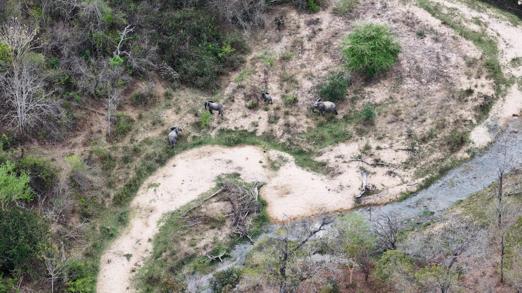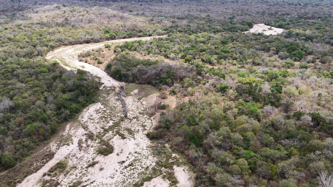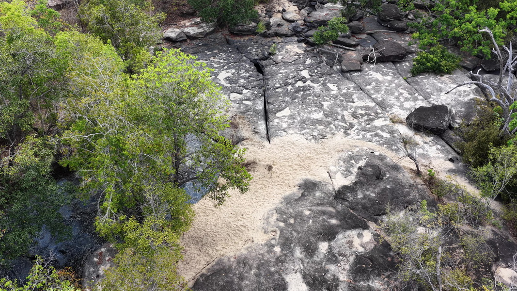 Lots of lion tracks in the river bed.