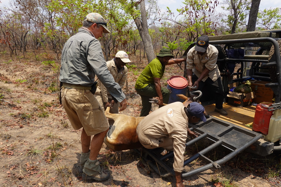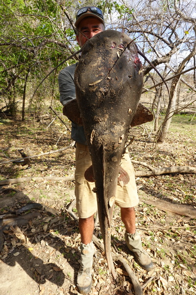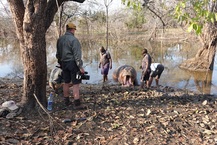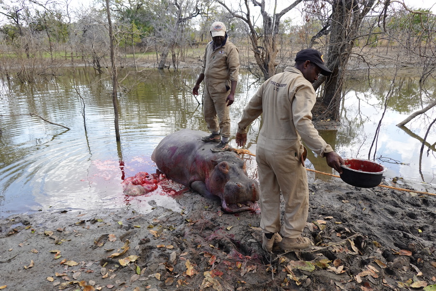 This morning the decision was to go to the lake and shoot a hippo for croc bait.