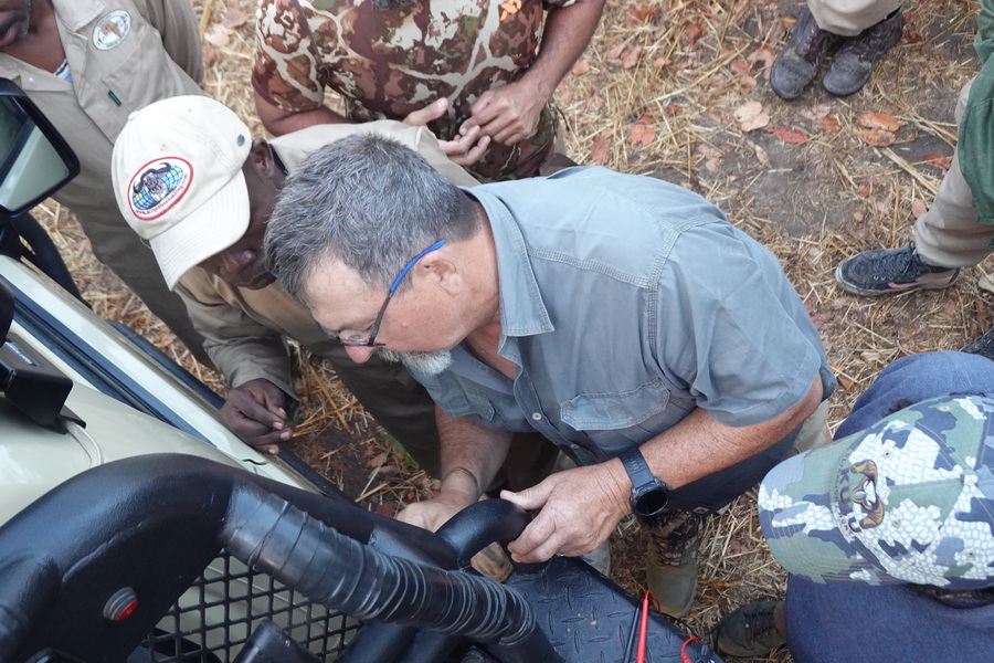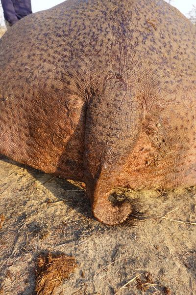 One of our savvy trackers did some skinning and was able to locate and expose a discolored area which was attributed to a Black Mamba bite in the neck/shoulder area, exonerating the low striking Puff Adder.