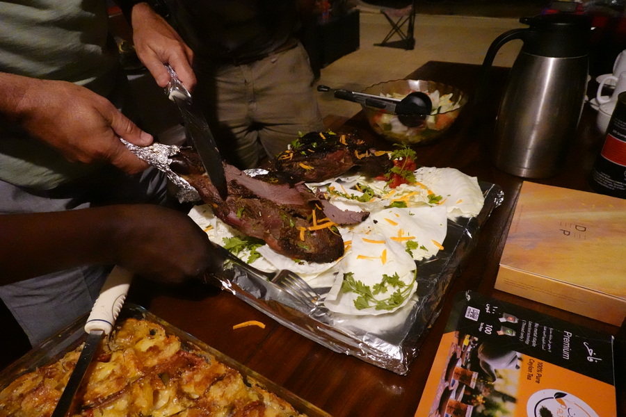 A big bull elephant came to feed in front of our camp while we were having dinner.