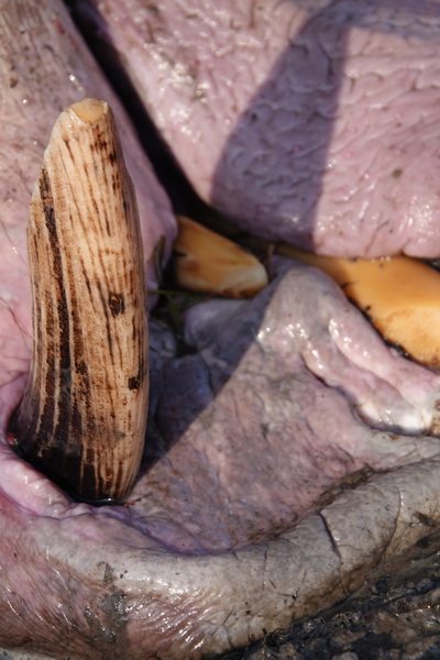 We found him because we spotted Vultures perched in the nearby trees and why was the carcass intact? Could be due to a particular smell from the poisoning effects released from the carcass that acts as a warning?